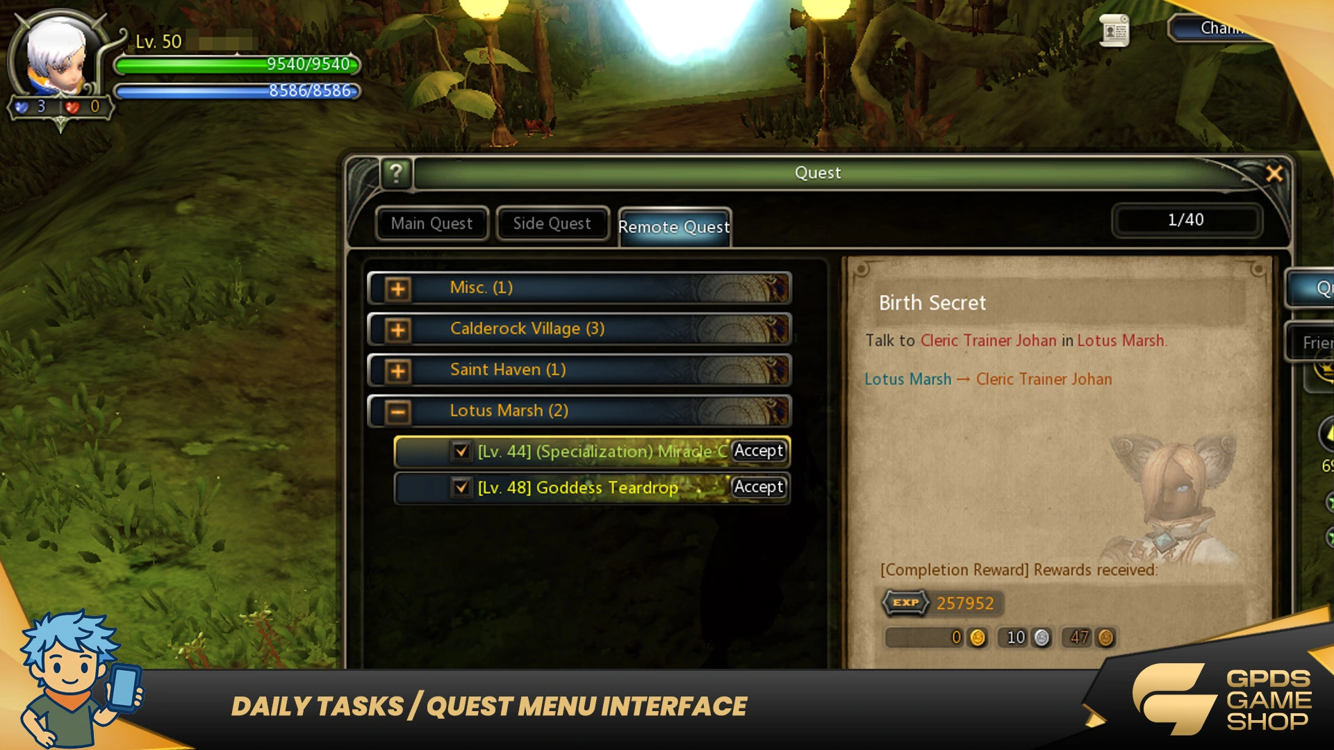 Completing quests efficiently speeds up your progress and strengthens your characters faster than just grinding mobs.