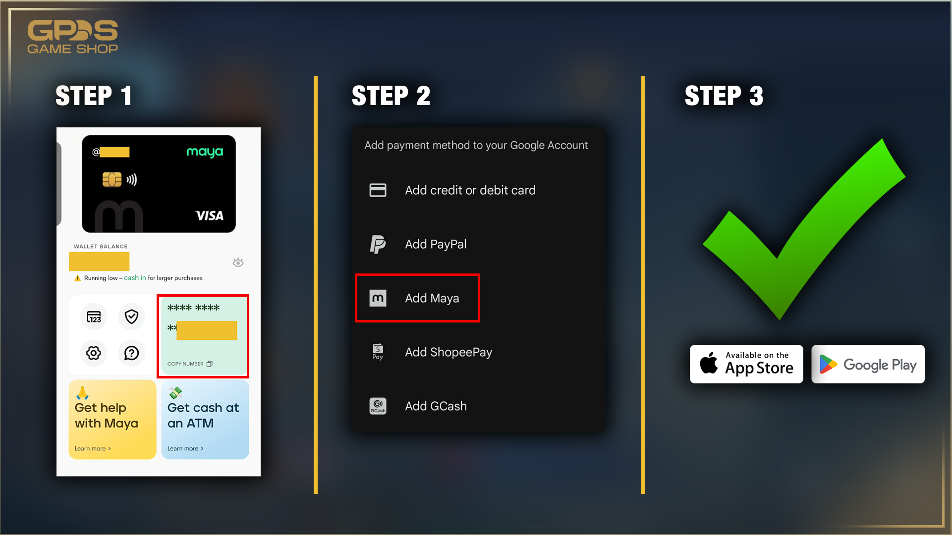 Now that your Maya card is ready and linked, buying the card is the easiest part. Follow these steps for a smooth Honor of Kings top up Maya transaction.