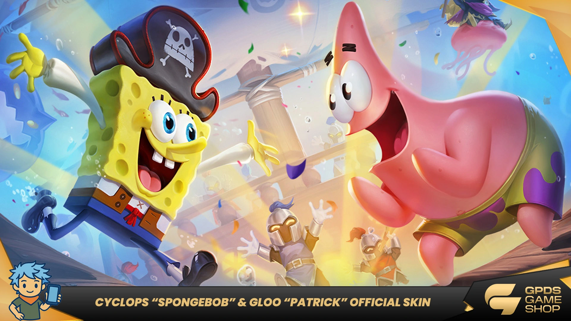 The highlight of the collaboration is undoubtedly the Cyclops SpongeBob skin and Gloo Patrick skin. Cyclops’ new look is bright yellow with playful sea bubble effects, perfectly capturing SpongeBob’s cheerful personality. Meanwhile, Gloo’s Patrick skin features pink jelly-like animations and whimsical expressions, making in-game battles feel fun and lively.