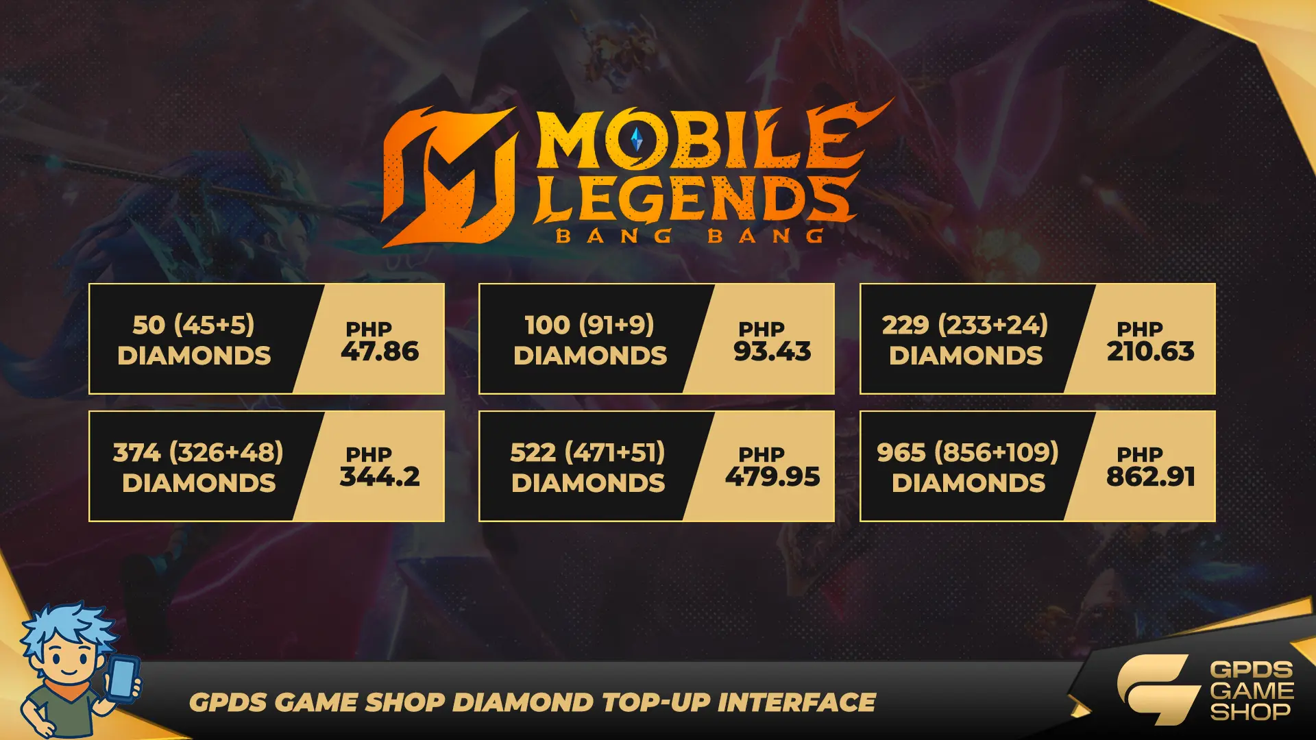 GPDS Game Shop is a trusted MLBB top up Philippines seller offering discounted top ups and cheap game credits with instant delivery.