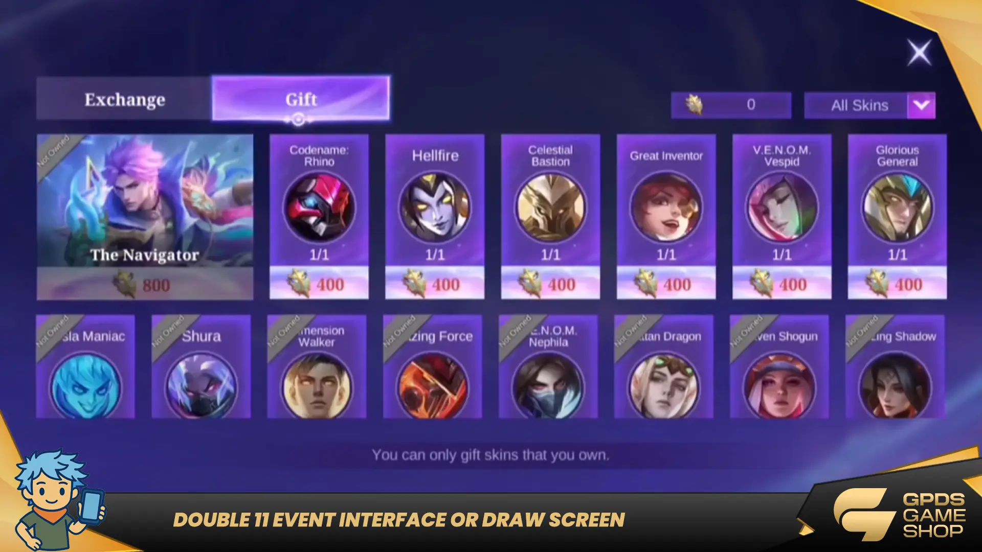 Past Double 11 skins like Gusion, Wanwan, and X.Borg also make a return.