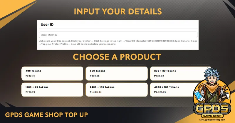 This UID is what you’ll use for how to top up Honor of Kings with UID at GPDS Game Shop. Entering the wrong UID means your Tokens could go elsewhere, so double-check before confirming.