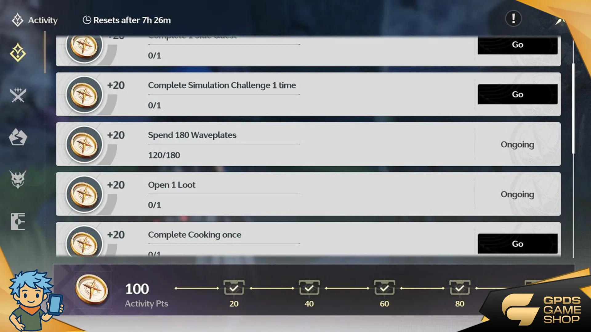 It might seem small, but hitting 100 Activity Points every day nets you 60 Astrite. That’s 1,800 Astrite a month—more than a 10-pull just for logging in and doing basic chores like absorbing an Echo or cooking a dish. It takes 10 minutes, max.